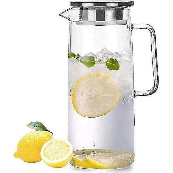 Borosilicate Glass Water Jug Juice Jug Carafe with Lid Brush for Hot/Cold Water Iced Tea 1000ml