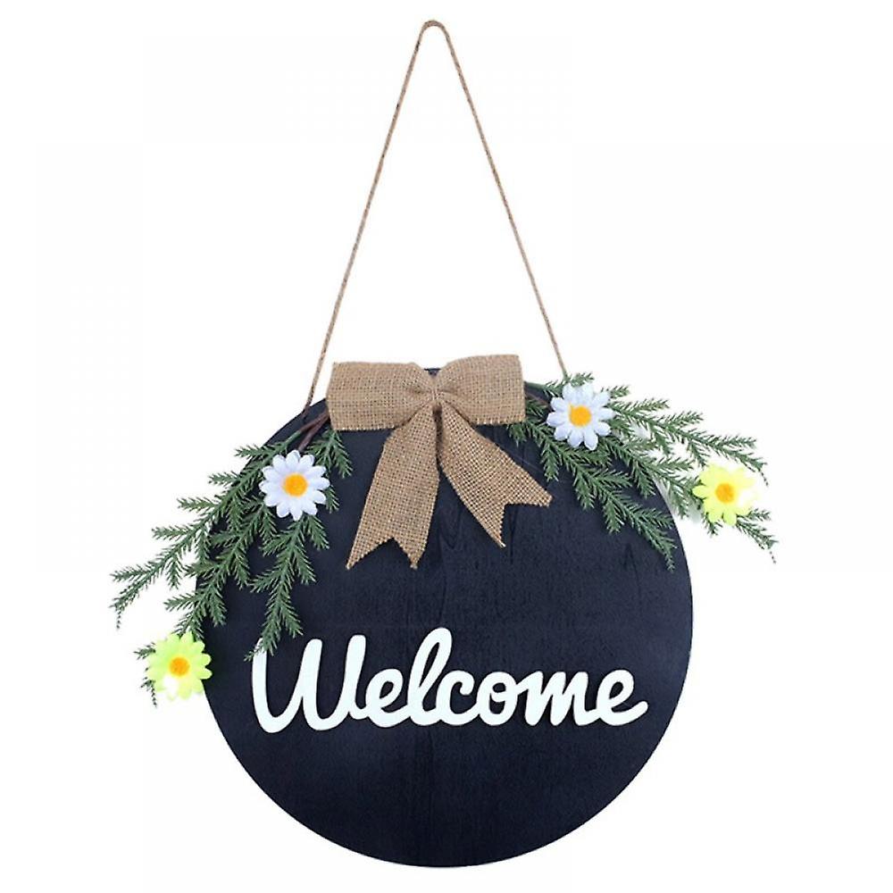 Welcome Sign for Front Door, Wooden Round Banner with Artificial Green Plants Wreath, Farmhouse Wall Plaque Art Decor