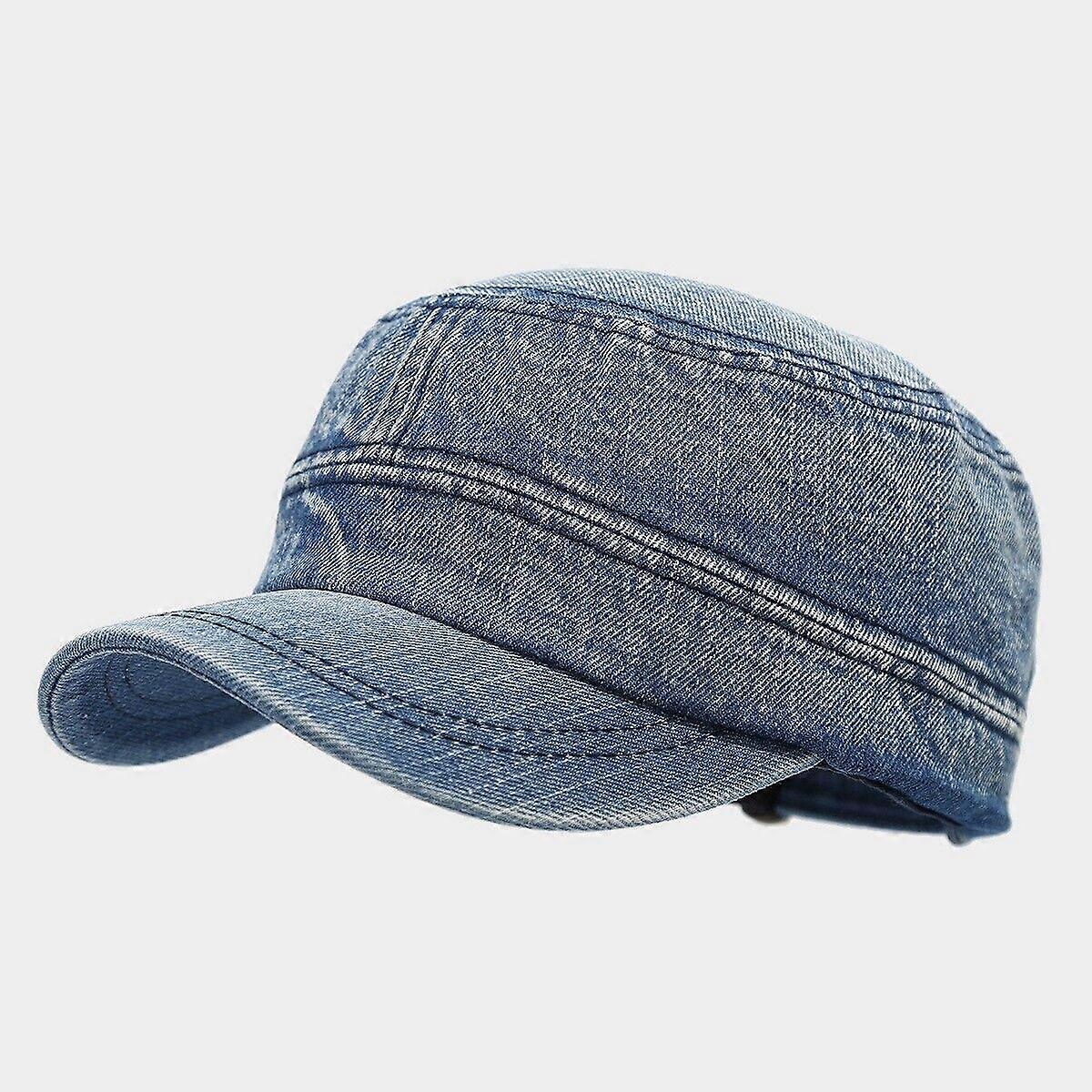 Men Adjustable Denim Baseball Cap Casual Flat Top Cap Military Style Cadet Hat
