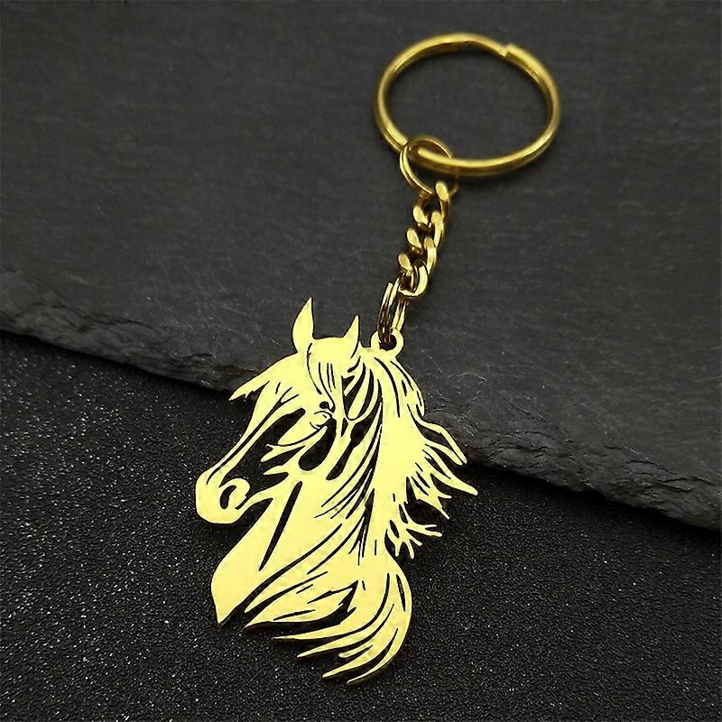 Hiphop Horse Pony Head Animal Keychain For Women Men Stainless Steel Gold Silver Color Male Bag Charm Keyring Jewelry Gifts