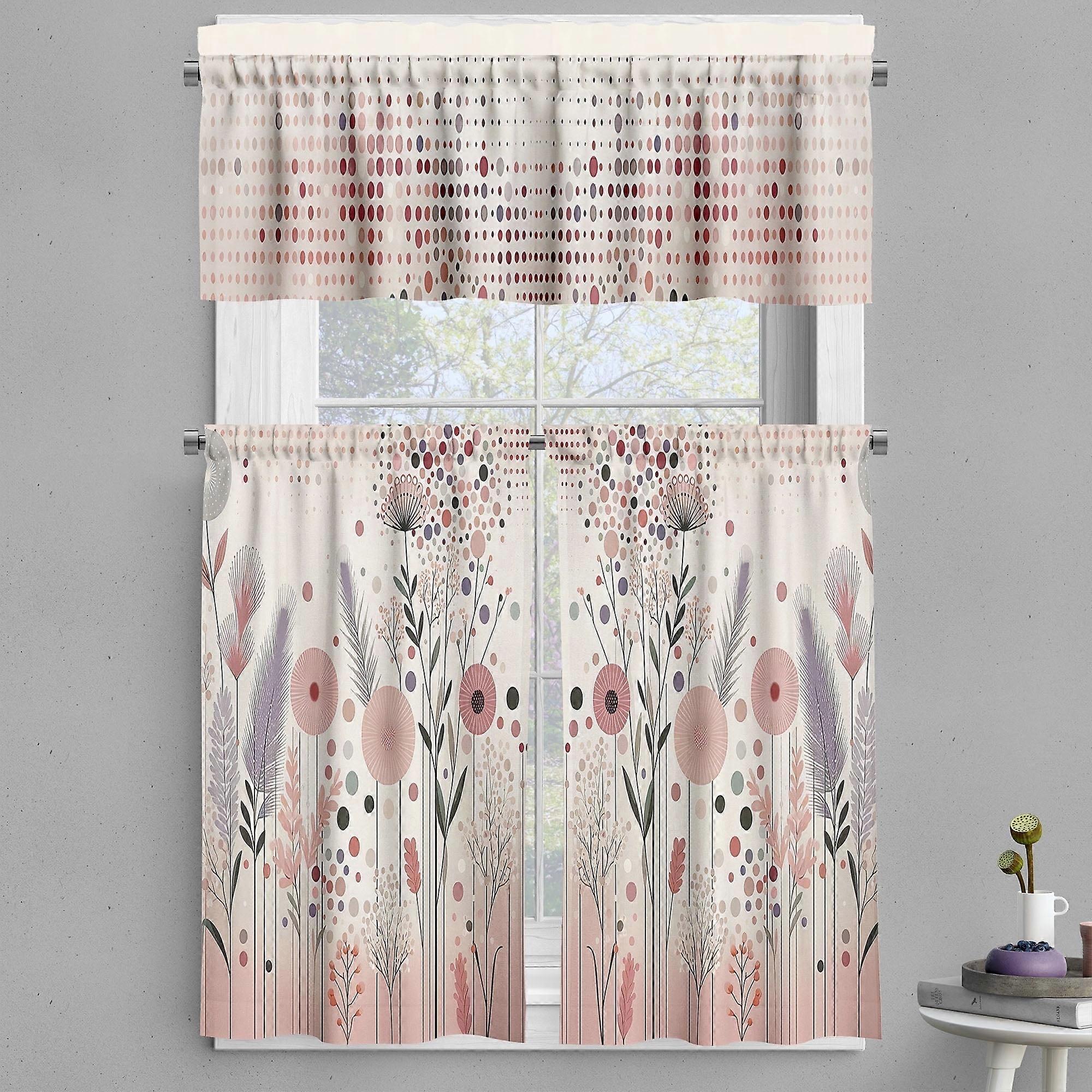 Ambesonne Pastel Valance & Curtain 3 Pcs Set, Pastel Botanical Art Dots, 55"x45", Blush Lilac and Eggshell