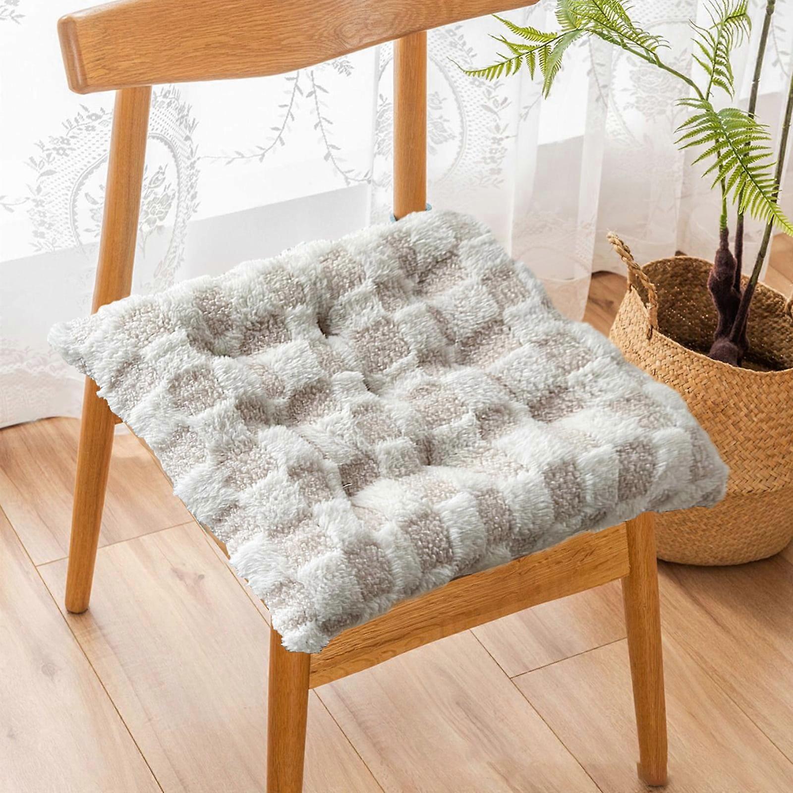 LSLJS Seat Cushion for Home, Long Plush Faux Fur Pad, Plaid Square Floor Cushion with Ties, Soft Thick Non-Slip Chair Pad, Winter Warm Pillow for