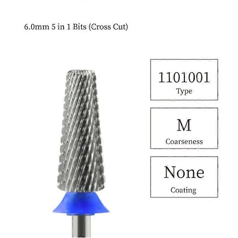 Super 6.0mm 5 in 1 Cross Cut Carbide nail drill bits set Quickly Remove Gel Nail Drill Bits For Acrylic Nails tools