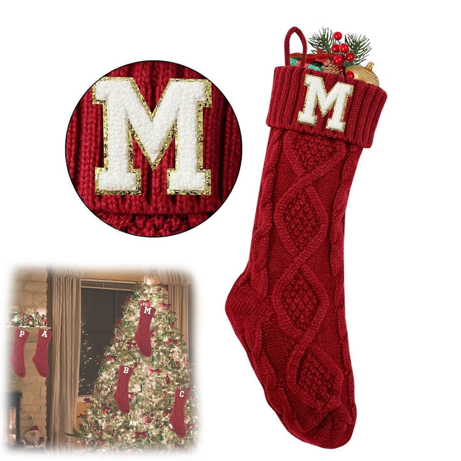 Christmas Stocking with Initial N, 18" Monogram Knitted Xmas Stocking, Red Fireplace Hanging Decor (1 Pack)