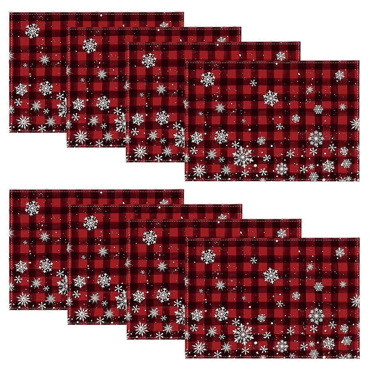 Smile Red and Black Buffalo Plaid Snowflakes Christmas Placemats Set of 8, 12x18 Inch Winter Table Mats for Party Kitchen Dining Decoration