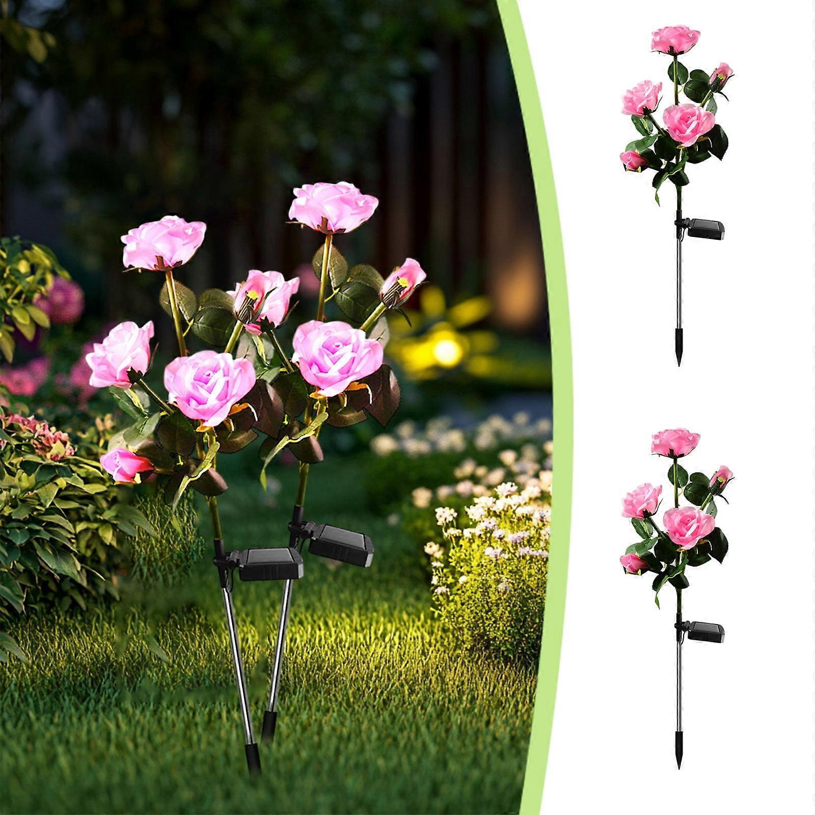 Djunllk 2 Pcs Solar Lights Outdoor - 5 Heads Roses, Auto On/Off Waterproof, Compatible with Garden Decor, Mother's Day Gifts