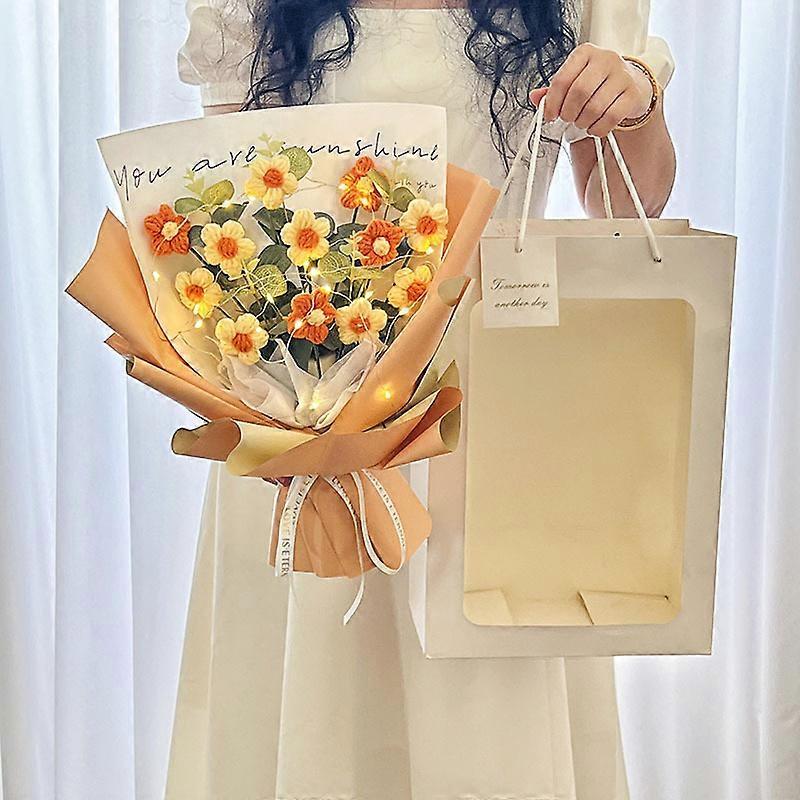 Crochet Flower Bouquet with Light String Crochet Flower Bouquet Mother's Day Gift Teachers Day Knitted Puff Flower Bouquet Gift