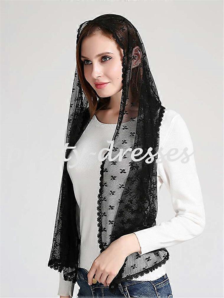 Women Black white Clove Lace Mantilla Veils Chapel Catholic Long Headcover Scarf
