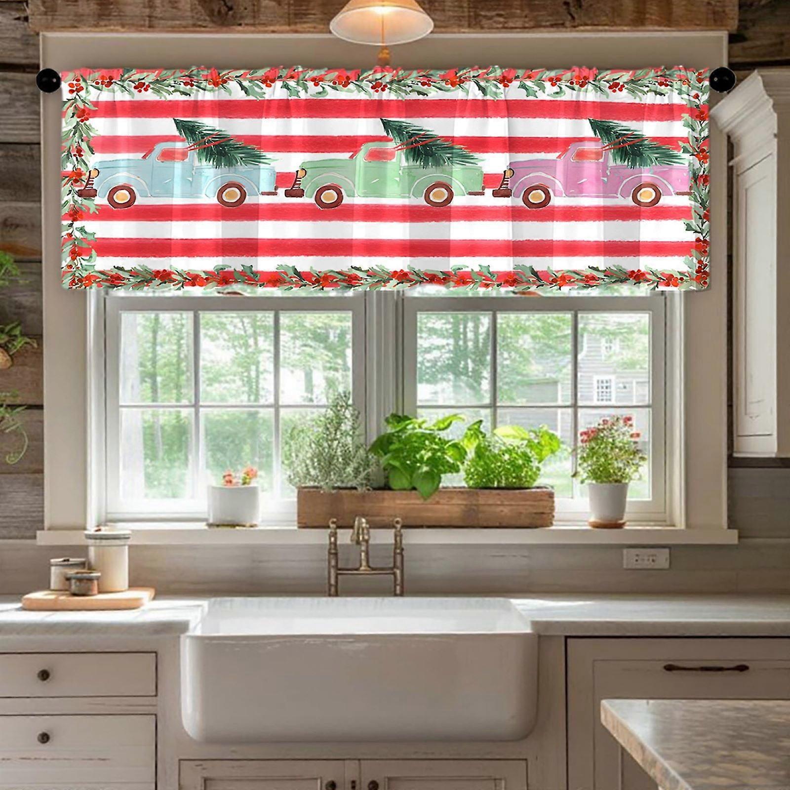 Txmfgh 1PC Multi Colour Floral Short Curtain - Christmas Kitchen Half Curtain, Small Window Decoration, Heat Insulation