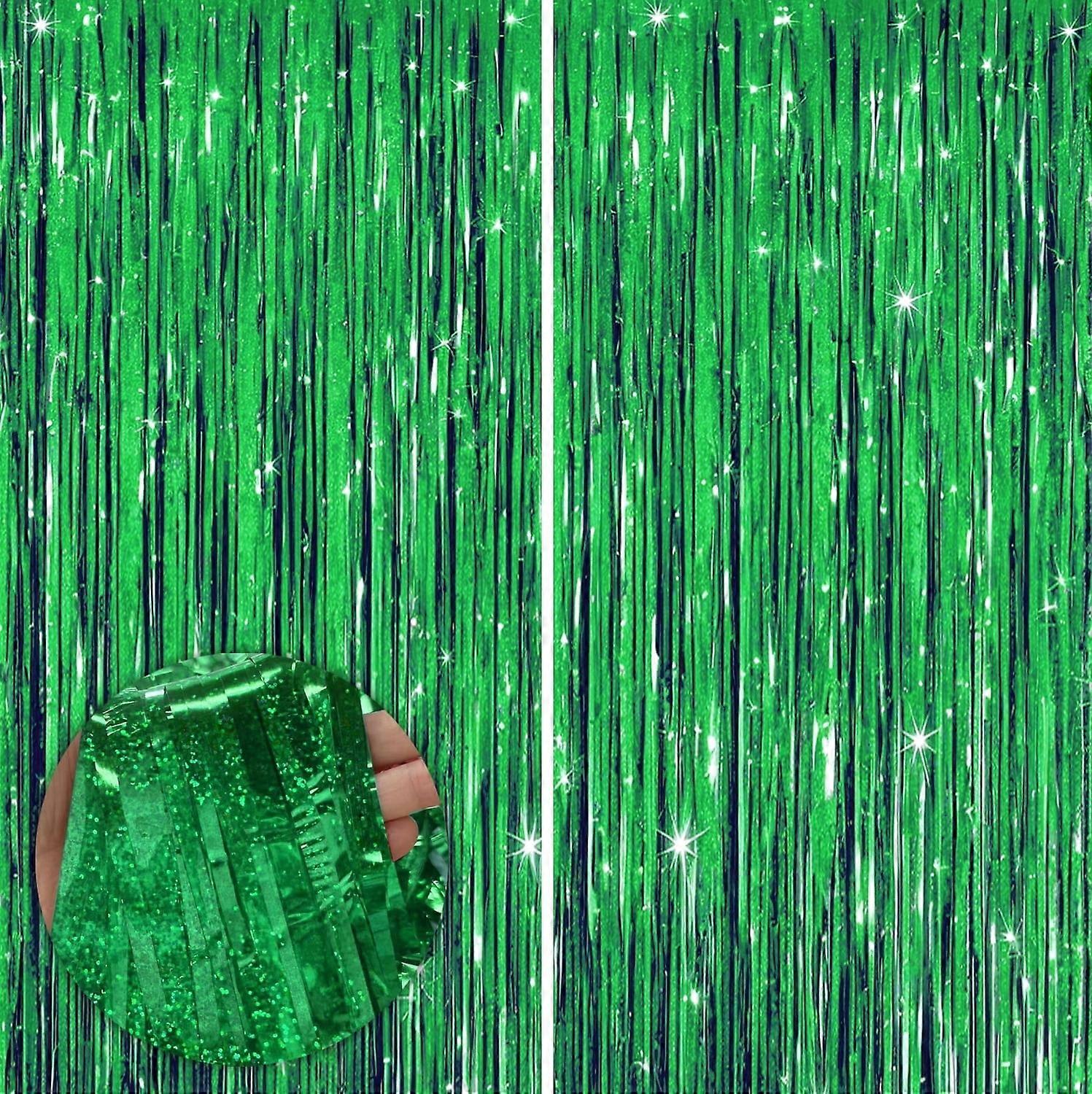 4-Pack Light Blinking Green Foil Fringe Curtains for Events, compatible with Sm:)e, Birthday, Wedding, Graduation, Christmas, Baby Shower, Festivals,