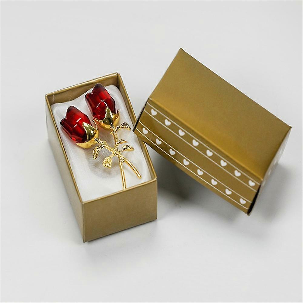 Double Rose Flowers Crystal Glass Figurines Craft Artificial Flower With Box Valentine'S Day Wedding Favors Lovers Gift Souvenir