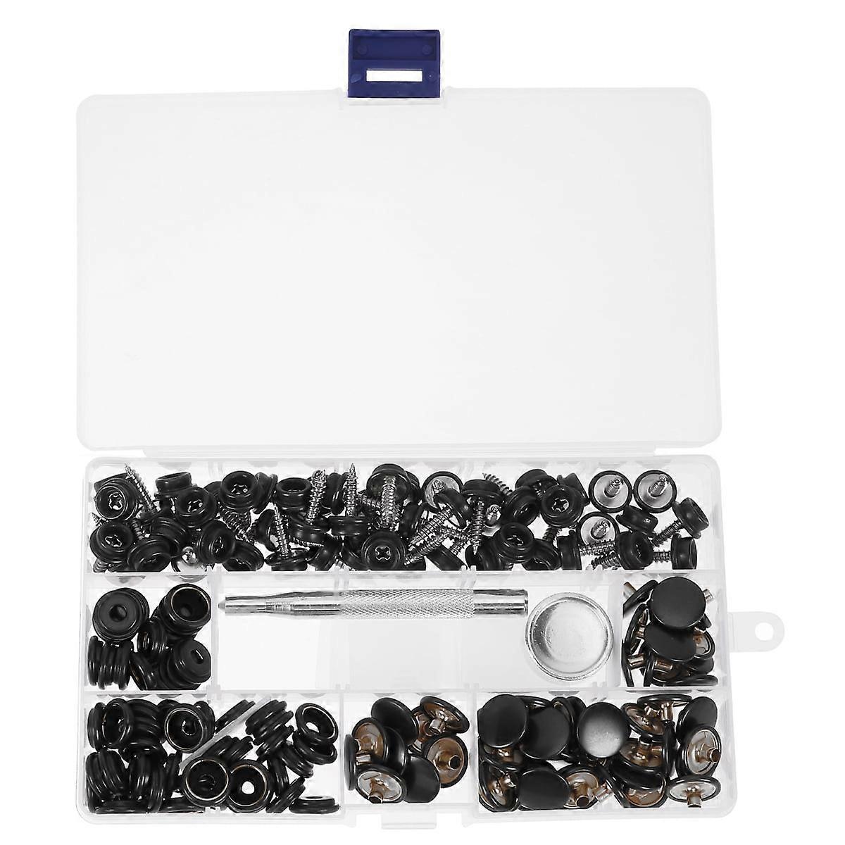 Mizh 15mm Metal Snap Fastener Screw Kit with Tool, Black, compatible with tent, boat, sofa, home fixing