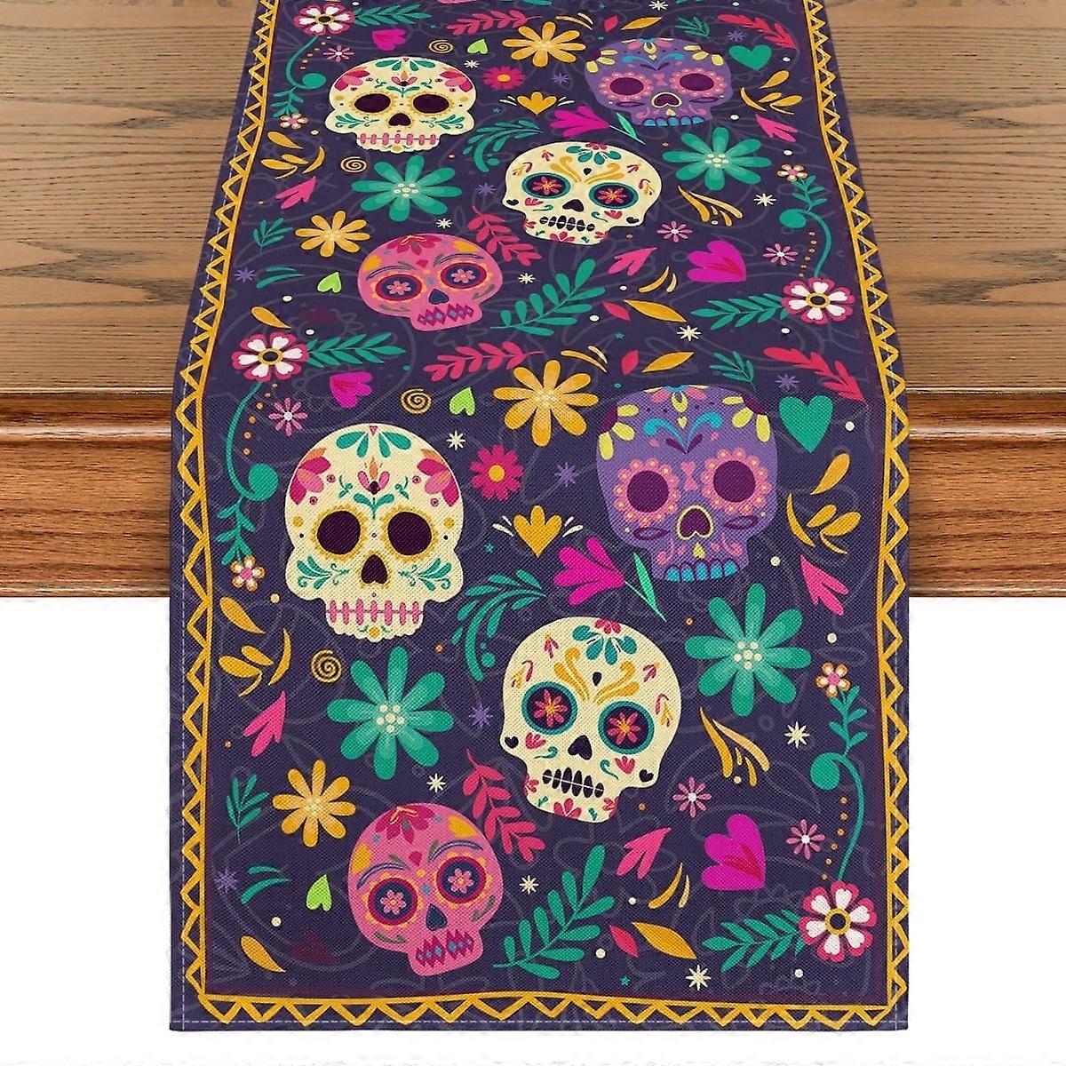 Smile Watercolor Marigolds Skull Day of The Dead Table Runner 13 x 108 Inch