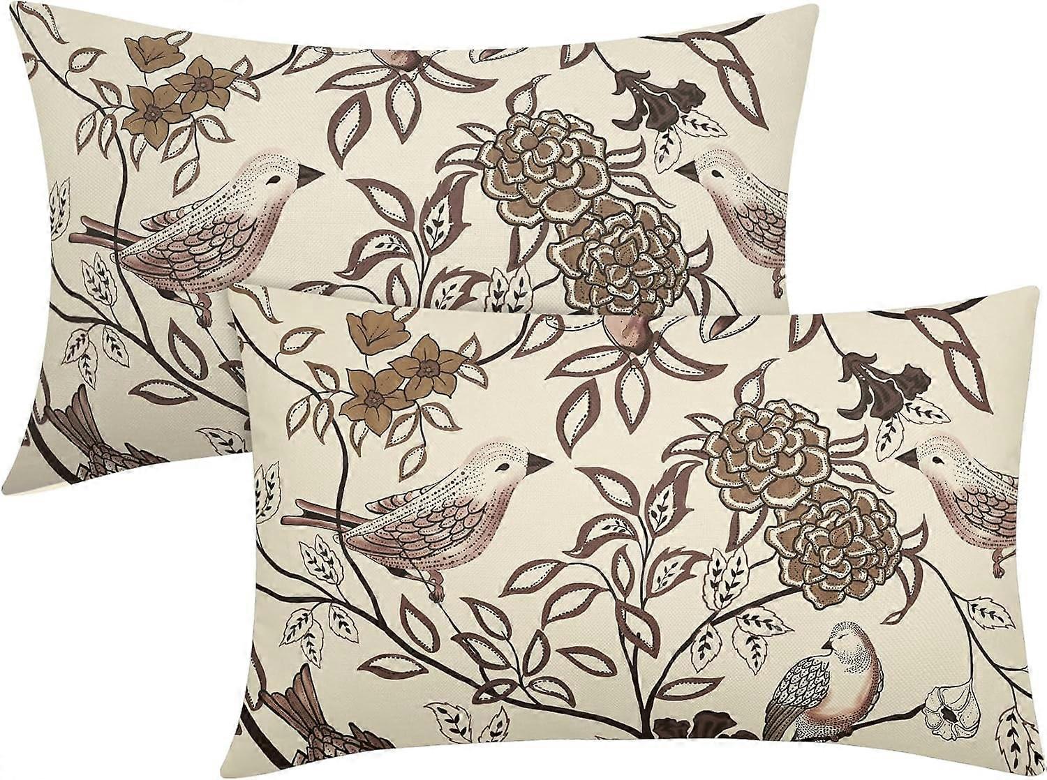 Vintage Floral Bird Lumbar Pillow Covers 12x20 Inch Set of 2, Brown Flowers Leaves Decorative Throw Pillows for Couch, Compatible with Chinoiserie