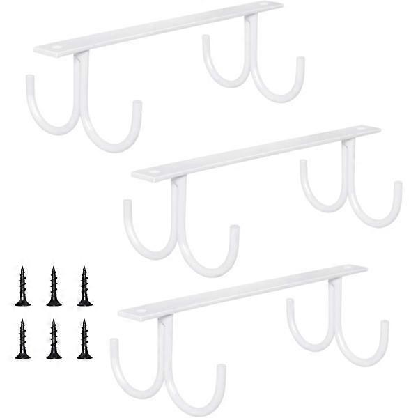 Mocoum Under Cabinet Cup Holder, Rustic Cup Holder Organizer Rack Cup Holder Under Shelf 12 Hanging Hooks Rack for Mugs White