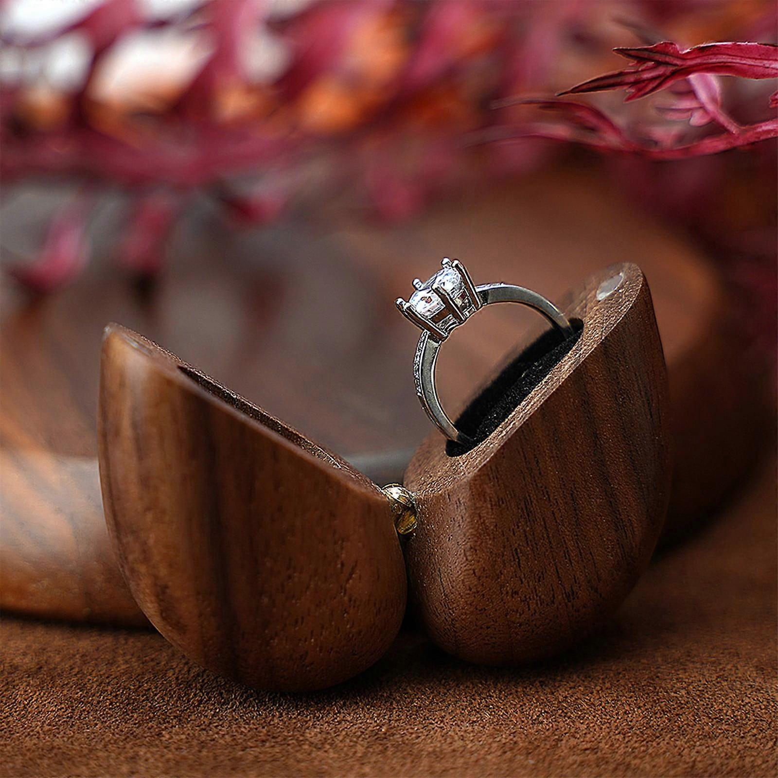 Lmueinov Wooden Heart Ring Box with Stand, Gift Organizer, Compatible with Wedding, Proposal, Engagement