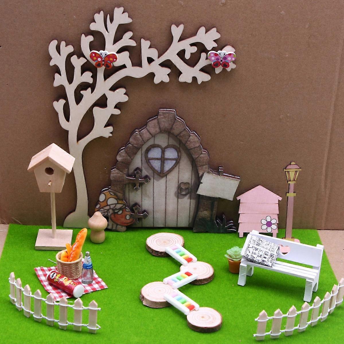 Dollhocome Miniature Spring Wooden Easter Garden Magical Fairy Door Tale Education Learning Craft Activities Microlandscape Decor