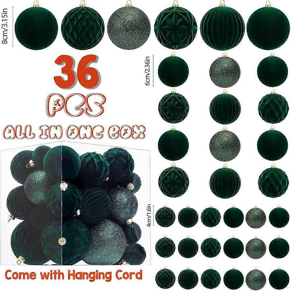 Velvet Christmas Ornaments 36-Piece Elegant Christmas Decor Burgundy Red Green Flocked Ball Decor For Tree Wreath Door Window