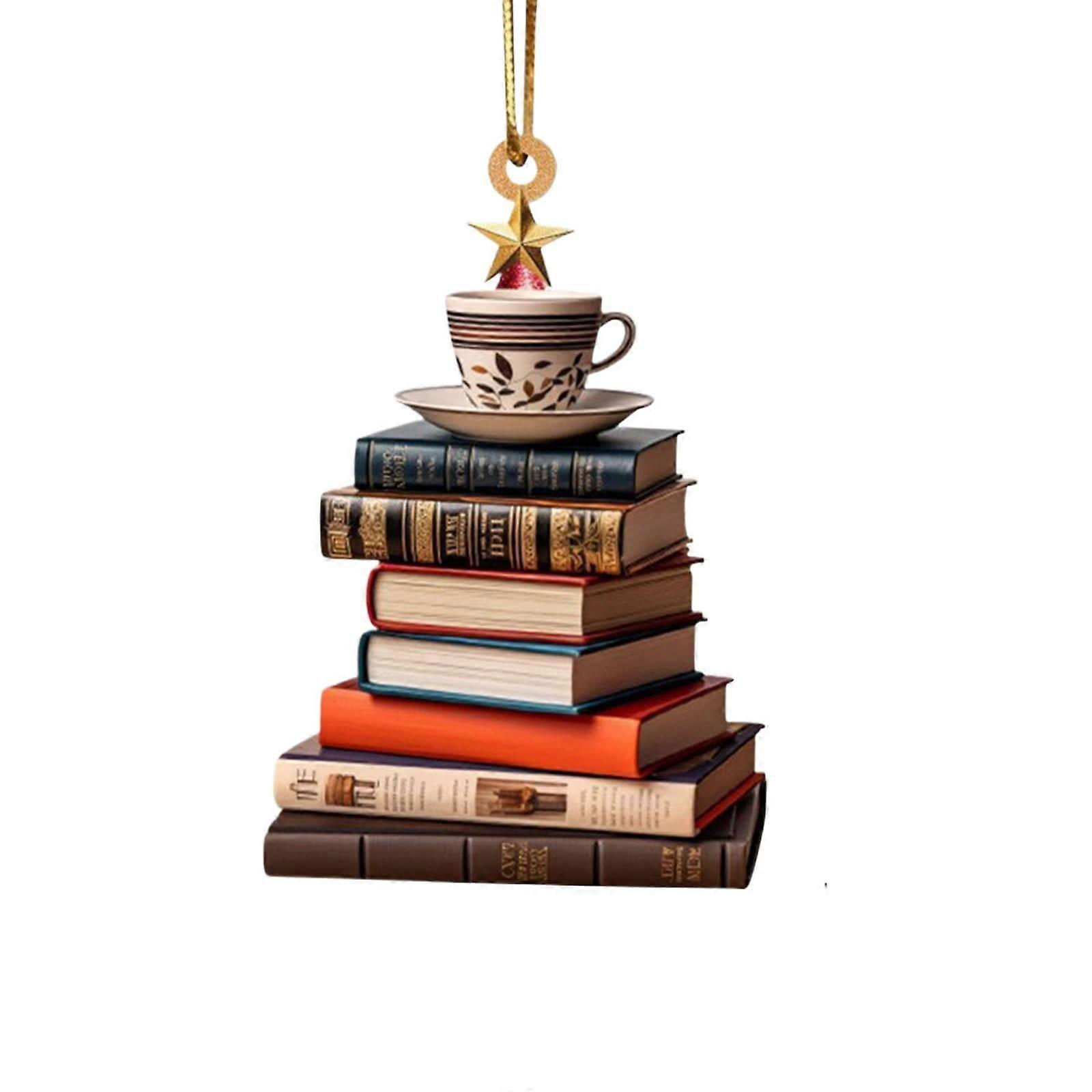 ELEVENTIME Christmas Bookshelf Pendant, Acrylic Stacked Books Hanging Sleigh Ornament for Home Office Holiday Decor, Compatible with Indoor Outdoor