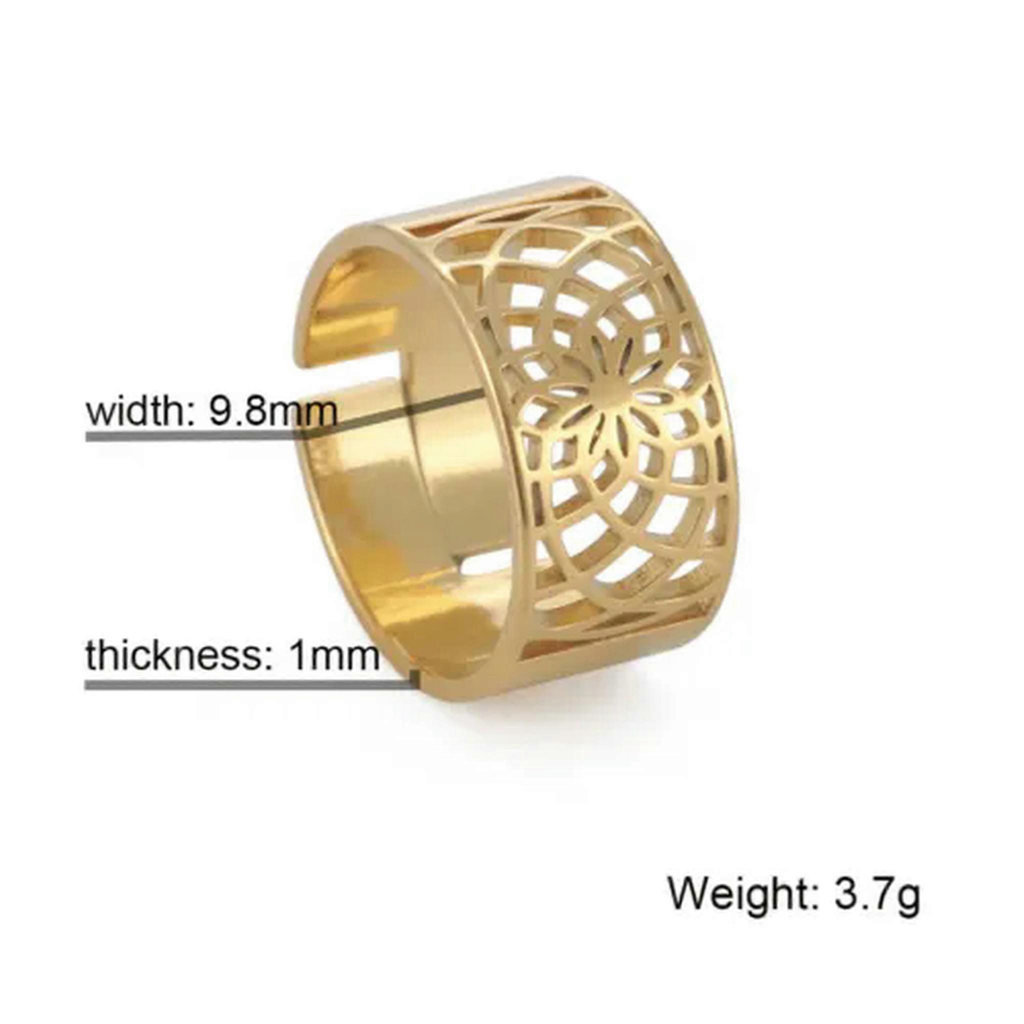 RSAMD Cutout Flower Ring Stainless Steel Adjustable Vintage Ring Jewelry Gifts-Adjustable-Gold