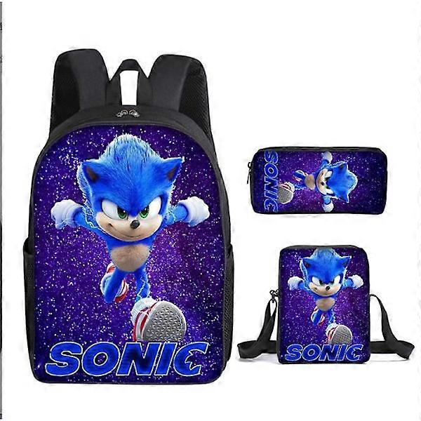 SONIC backpack Sonic elementary school backpack 3-piece anime cartoon backpack shoulder bag pencil bag Style 1 three-piece