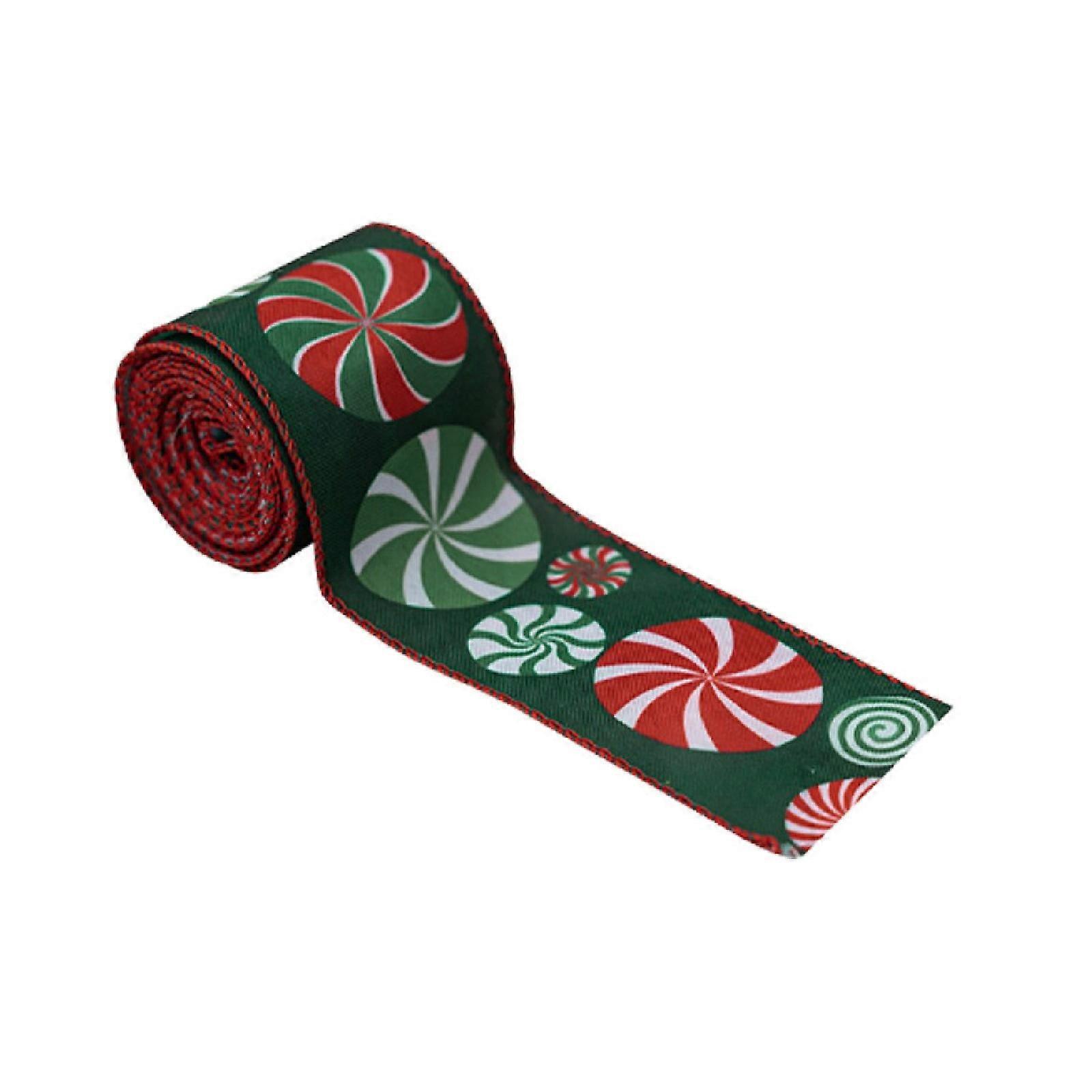 Lksixu Christmas Ribbon Wired 5.5 Yards 2.5 inch Red Green Candy Peppermint Burlap Wired Edge Ribbon, Glitter Decorative Ribbon for Tree, Gift