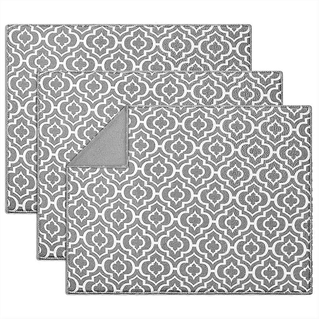 IBEEDOW 3 Pack Dish Drying Mat, 15x20 inch Microfiber, Absorbent Kitchen Mat for Sinks & Countertops