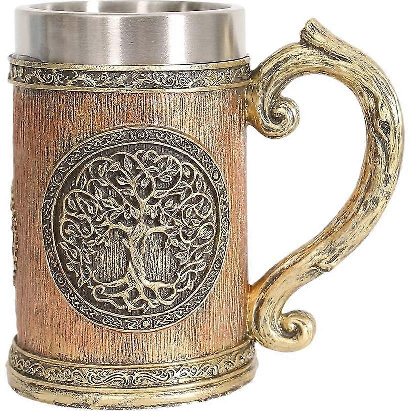 "Medieval Yggdrasil Beer Stein, Mythological World Tree Mug with Stainless Steel Liner, Life Tree Cup"
