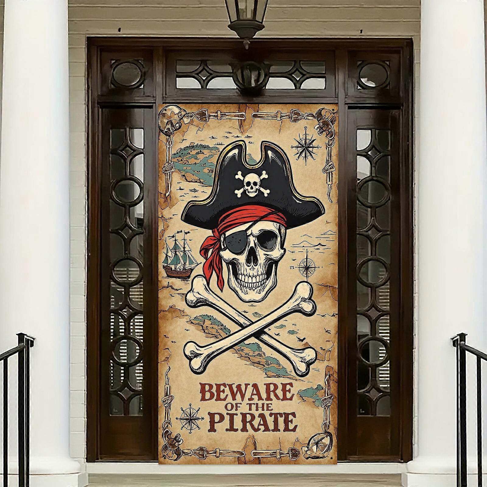 2D pirate pie door flag decoration, captain's hat, skull and crossbones, pirates, Halloween, birthday, party decoration