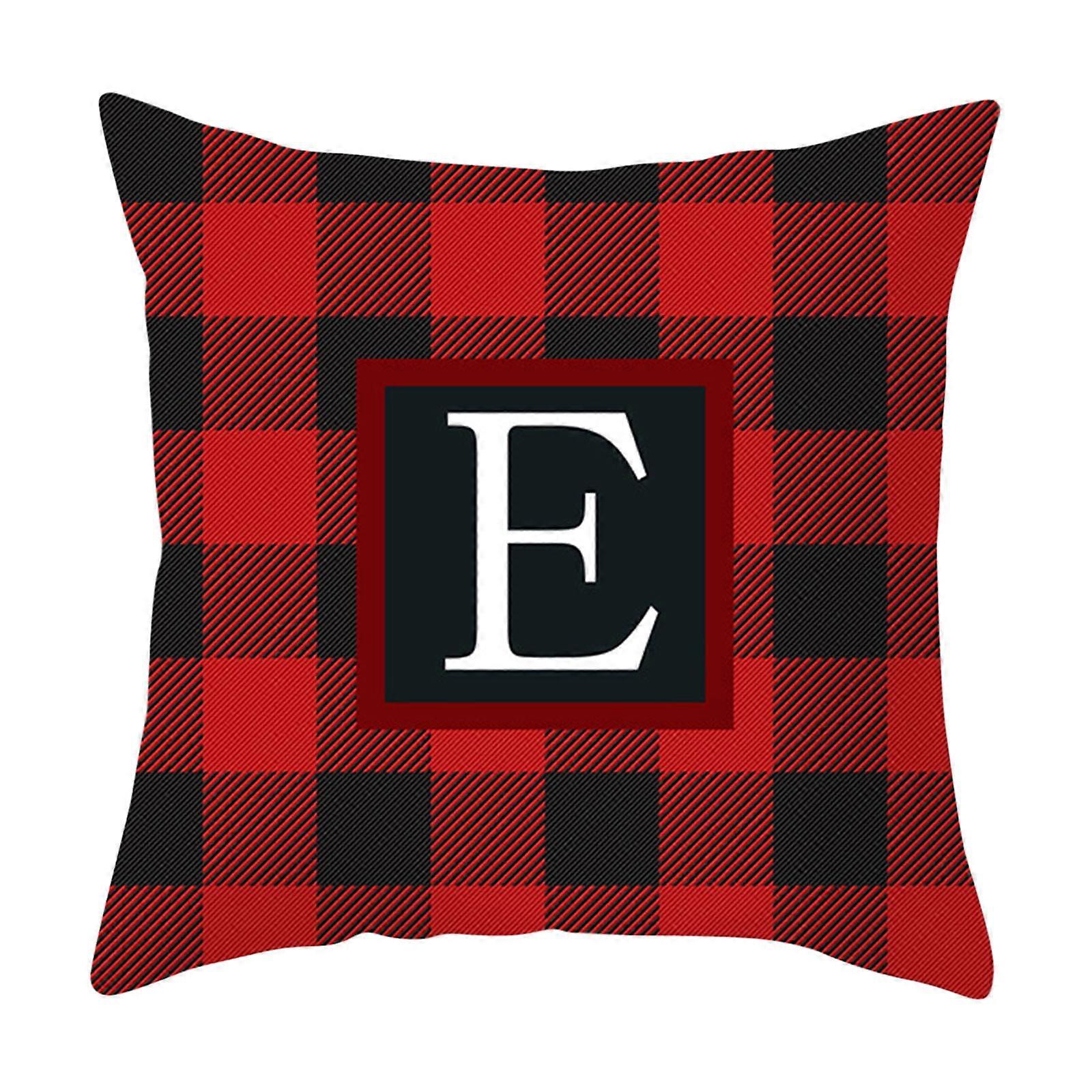26 Letters Christmas Pillow Covers 18x18, Red & Black Buffalo Plaid, Cotton Cushion Cases Xmas Decor for Home, Sofa, Bedroom