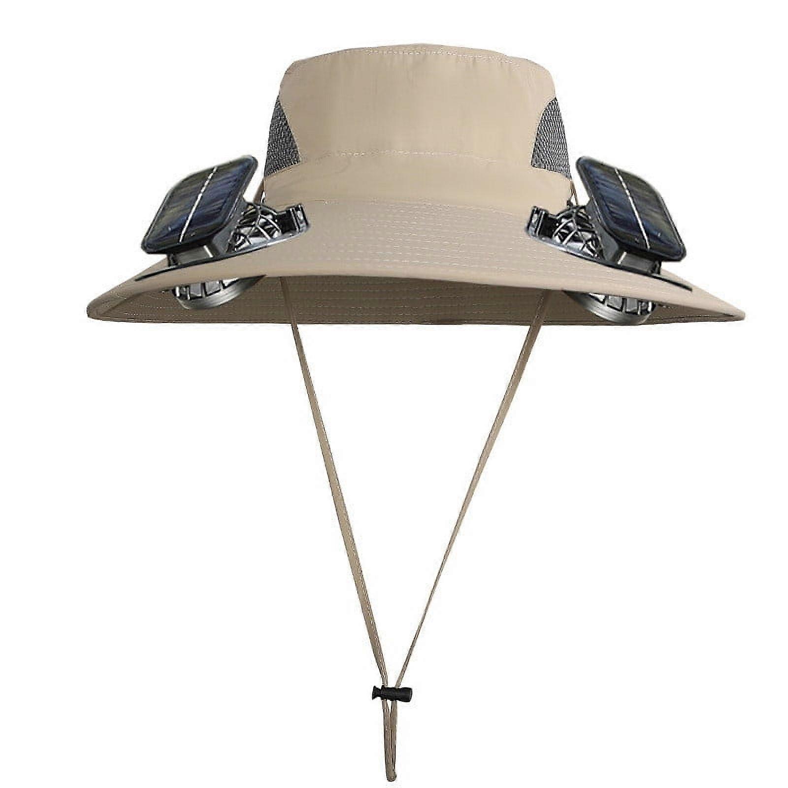 Wide Brim Solar Fan Hat,Fishing Hat with 2 Solar Fan, 3 Speed Solar Powered Fan Hat,Outdoor Sun Hats for Men Women Hat with Fan Built in,Khaki