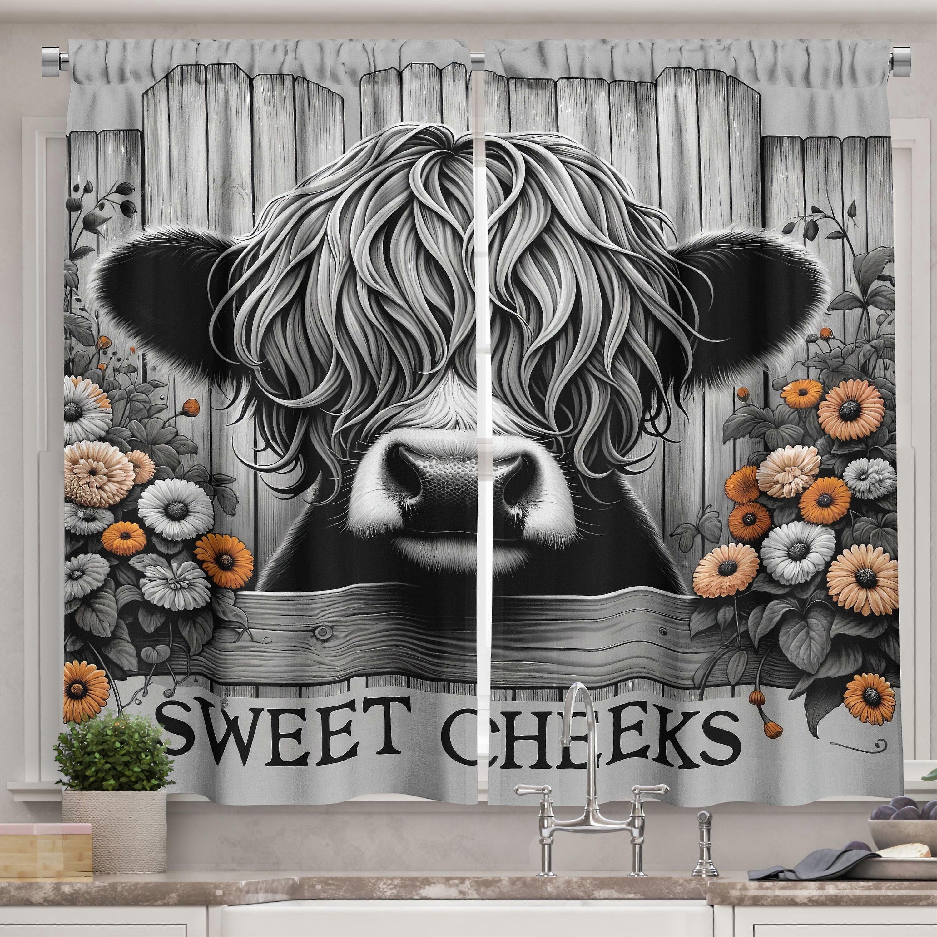 Ambesonne Rustic Kitchen Curtains, Vintage Farmhouse Cow Cheeks, 55"x36", Grey Black and Orange