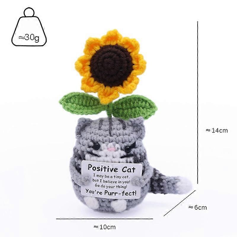 Funny Positive Crochet Cat Flower Doll Desktop Ornament Handmade Cheer Emotional Support Positive Cat with Card Home Party Decor
