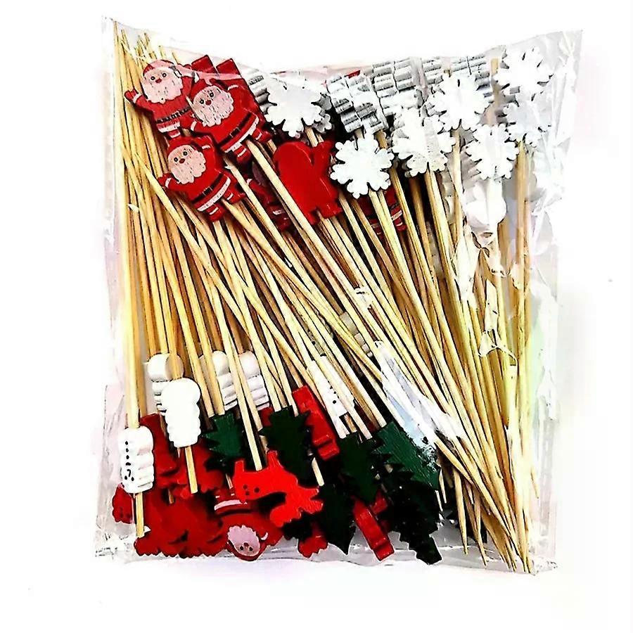 100pcs Christmas Fruit Sticks Disposable Bamboo Snowflake Tree Elk Santa Claus Snowman