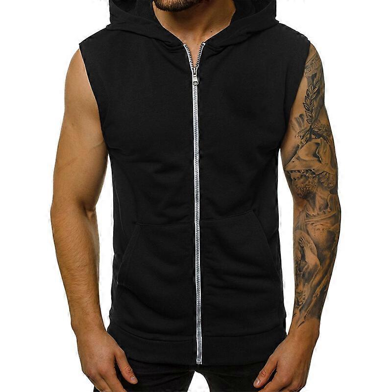 Men's Zipper Hoodie Sleeveless Vest Muscle Tank Tops Gym Fitness Bodybuilding о