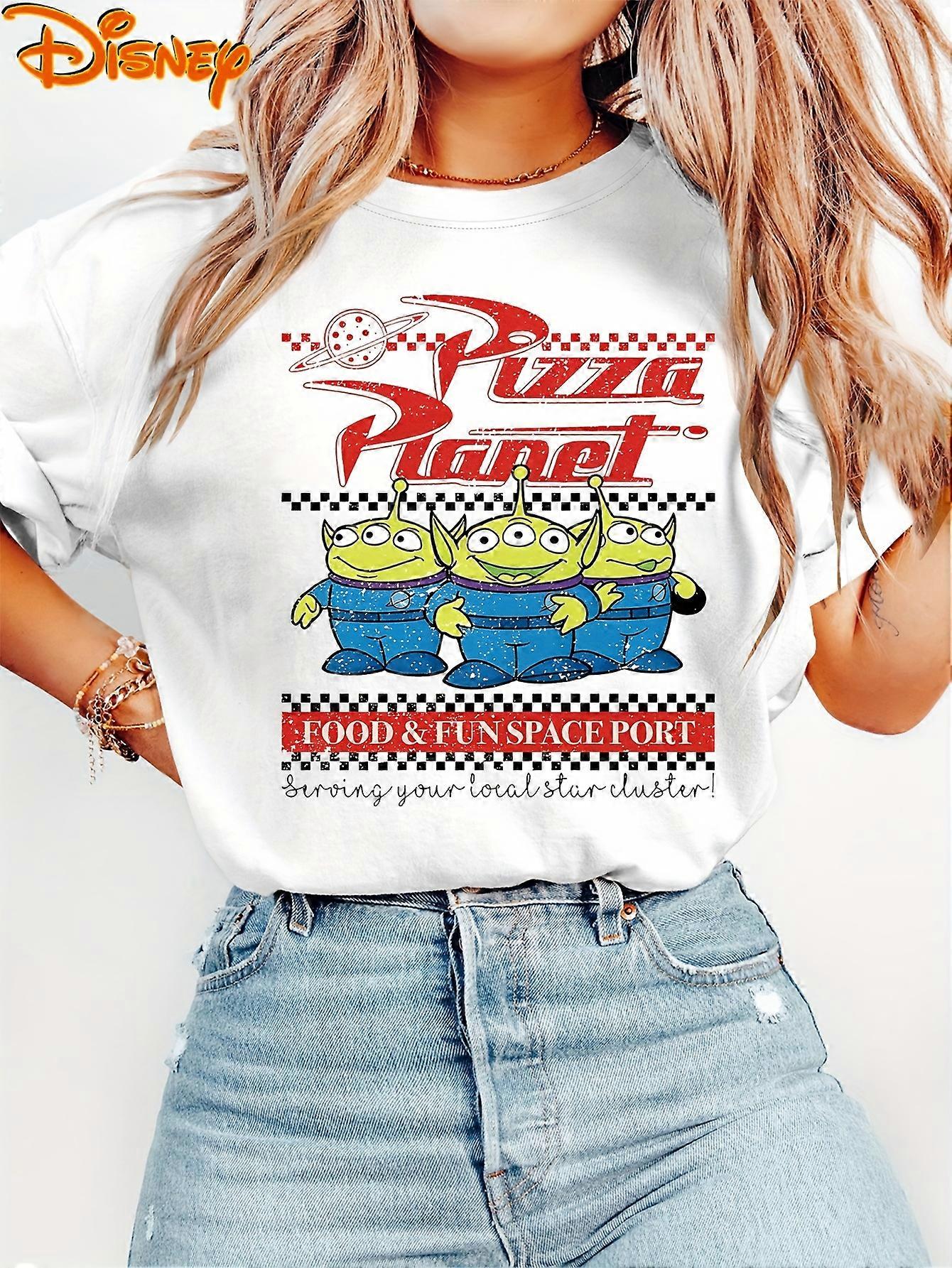 Summer Disney Toy Story Aliens Pattern T-shirt Parent-child Clothing Casual Cotton Short Sleeve Travel and Vacation Wear Unisex