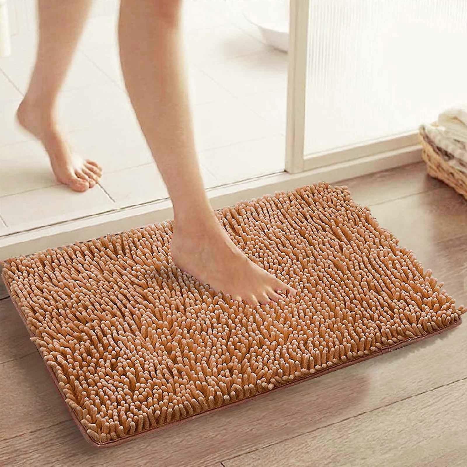 LYCAQL Bathroom Rugs 36x24, Extra Soft Absorbent Chenille, Non-Slip, Quick-Dry, Machine Washable, Compatible with Tub & Shower, Khaki