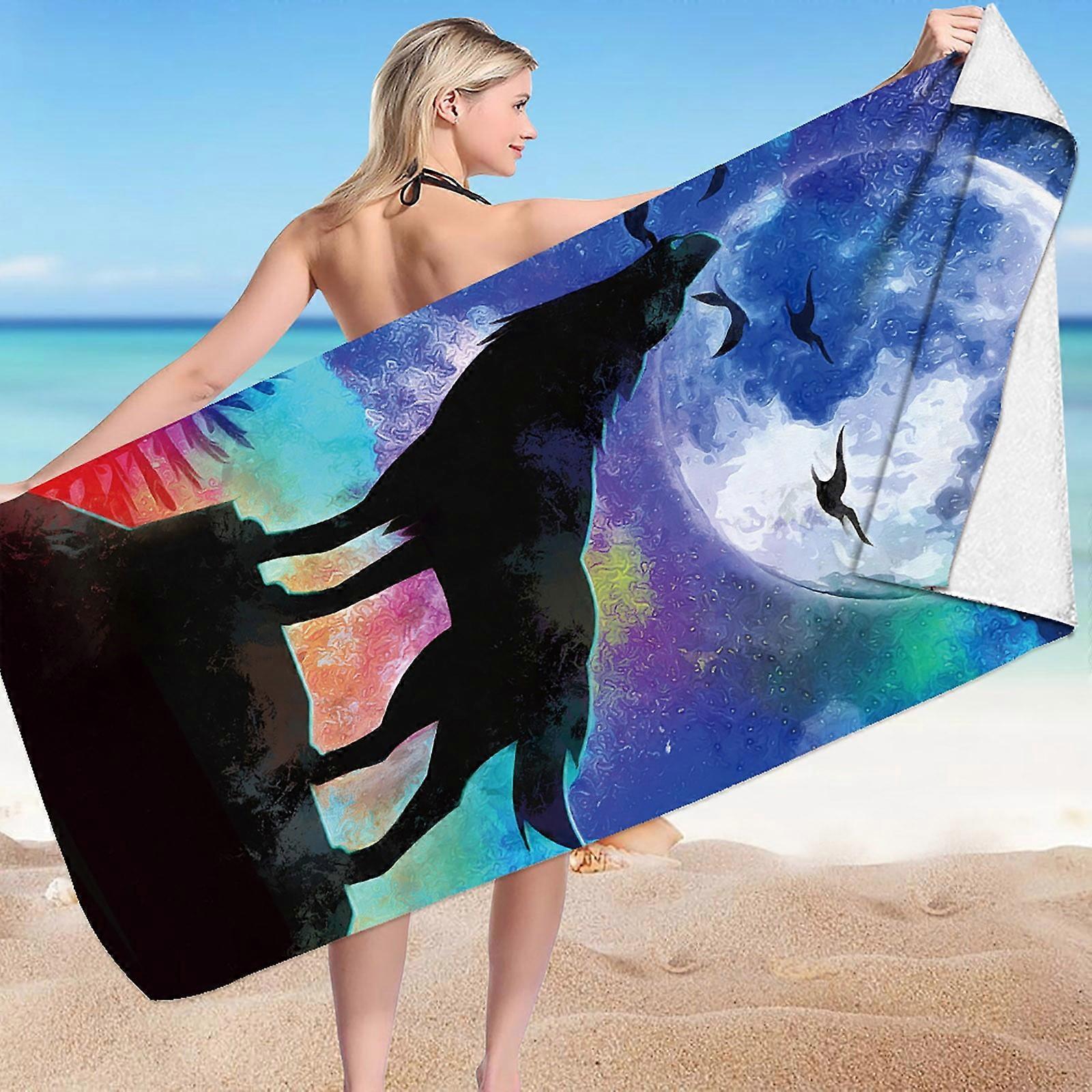 Clearance! XEOVHV Howling Moon Wolf Beach Towel 30"x60" Super Soft Plush Cotton Print Bath Towel for Men, Women, Kids - Animal Lovers