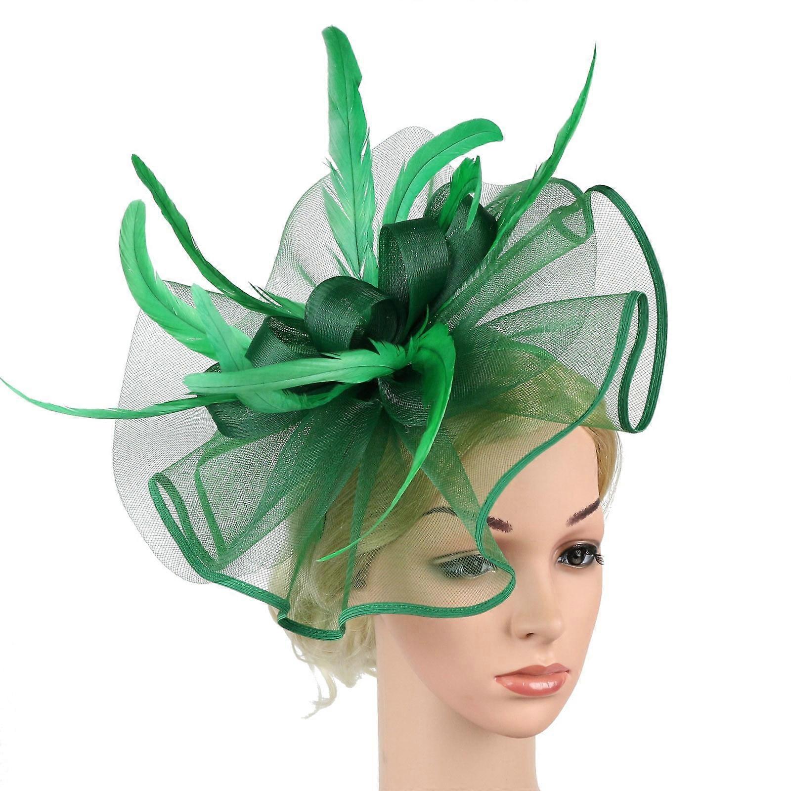 Hamky Hair Accessories,Hair Bands,Women Hat Headwear Church Feather Clip Fascinators Hat Wedding Party Cap For,Head Scarf,Hair Tools Green