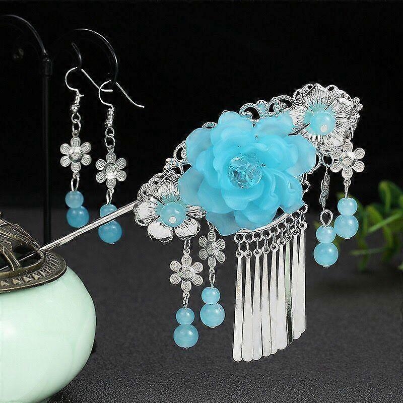 Ancient Women Girl Hanfu Tassel Hairpin Hair Stick Step Shake Alloy Headdress (B