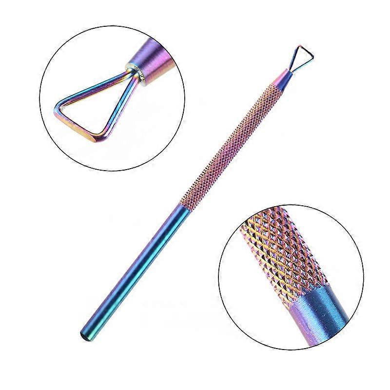 Rainbow Stainless Steel Nail Cuticle Pcomher Tweezer Nail Art Files UV Gel Polish Remove Manicure Care Groove Clean Tool