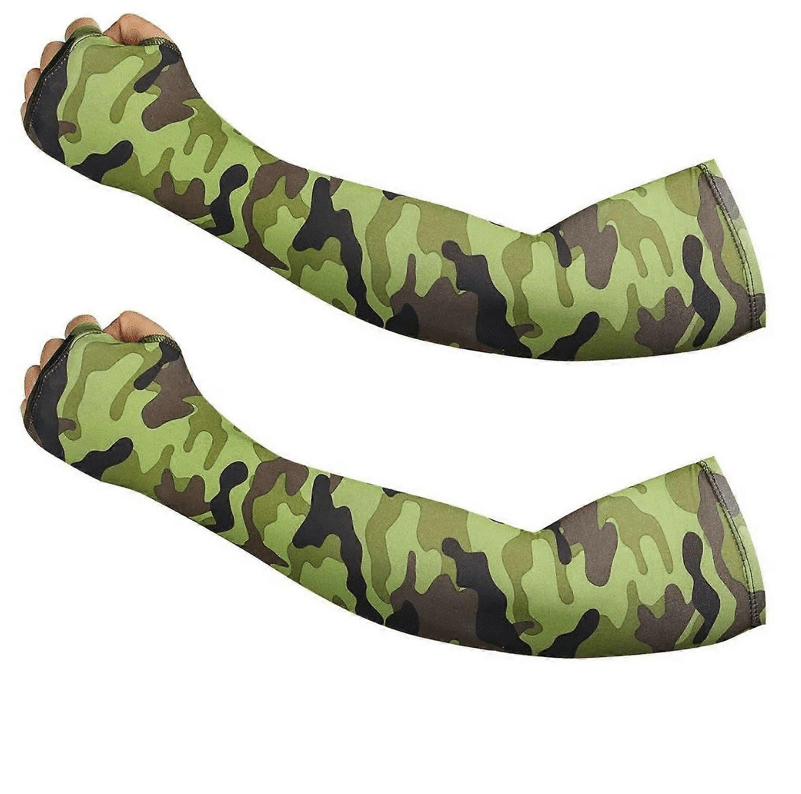 1 Pair Unisex Cooling Arm Sleeves, UV Sun Protection Camouflage with Thumb Hole for Outdoor Sports, Basketball, Driving, Cycling, Golf, Fishing