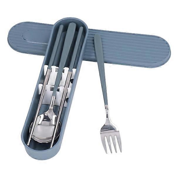 304 Stainless Steel Fork Spoon Chopsticks Set Cutlery Reusable Flatware Set for Students Office Workers Blue Silver