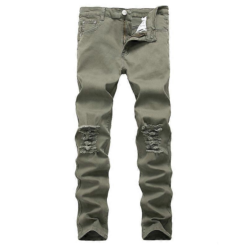 Men Jeans Ripped Denim Pants Skinny Destroyed Distressed Tapered Leg Jeans