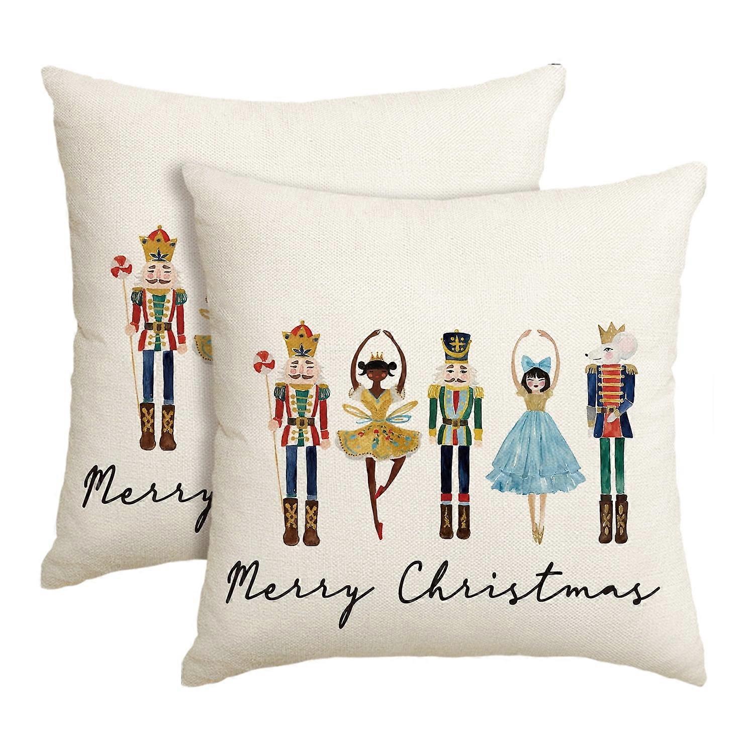 Sm:)e Nutcracker Merry Christmas Throw Pillow Cover 18x18 Inch Set of 2, Beige