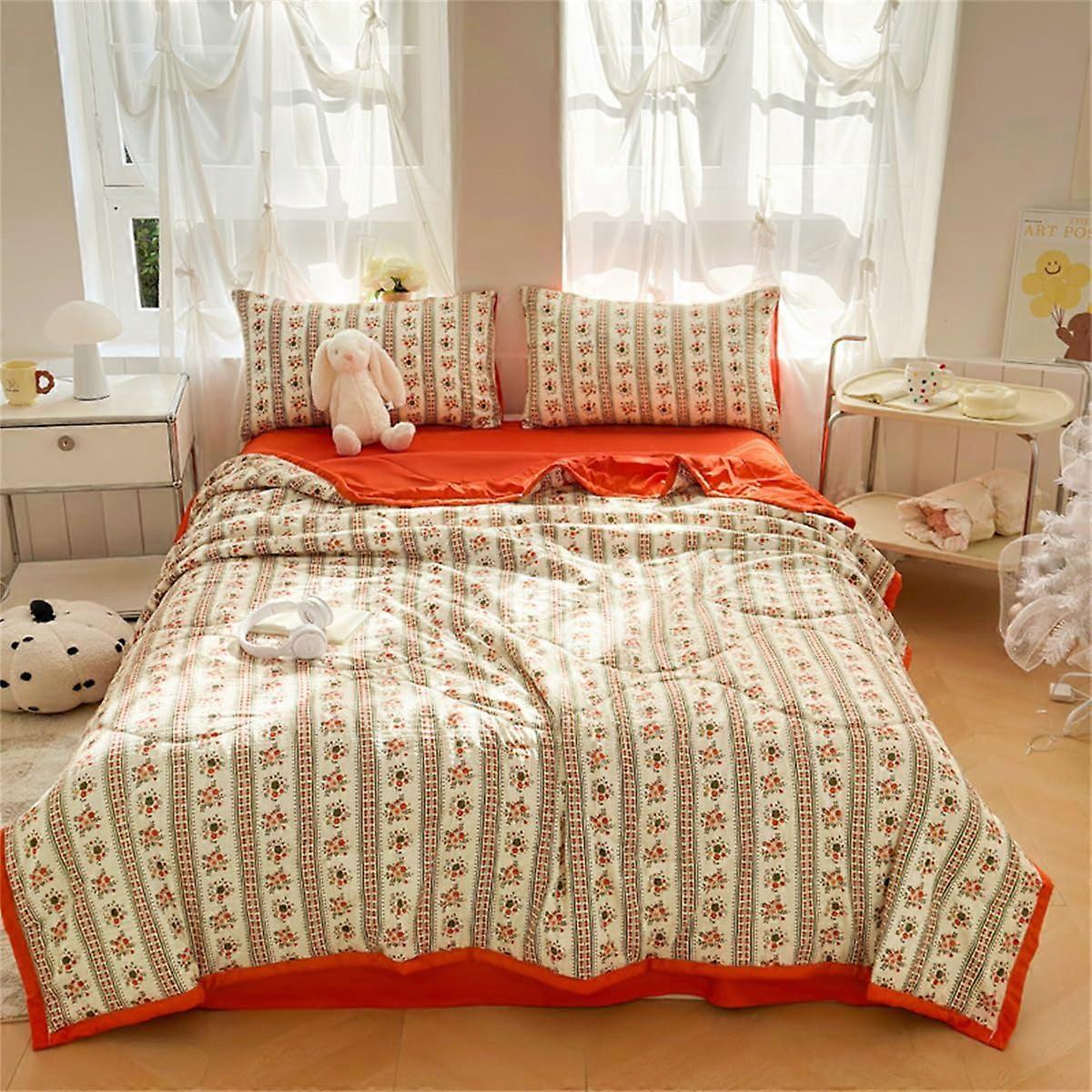 King Size Summer Cooling Quilt Set with Breathable Cotton and Reversible Floral Bedding Design