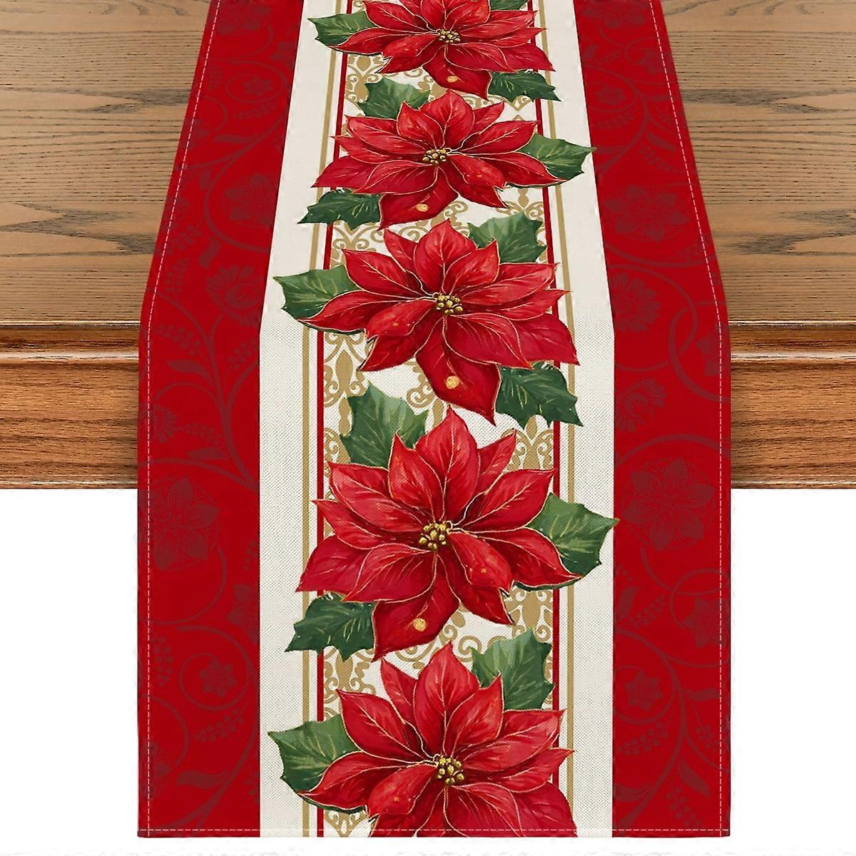 Smile Poinsettia Christmas Table Runner for Xmas Winter 13 x 72 Inch, Red