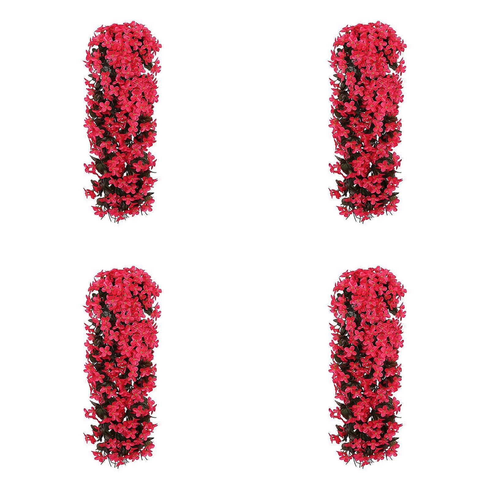 LKWLPD 4 Pcs Artificial Hanging Orchid Bunch, Violet Flower Wall Wisteria Basket Garland, Red - Home & Outdoor Decor