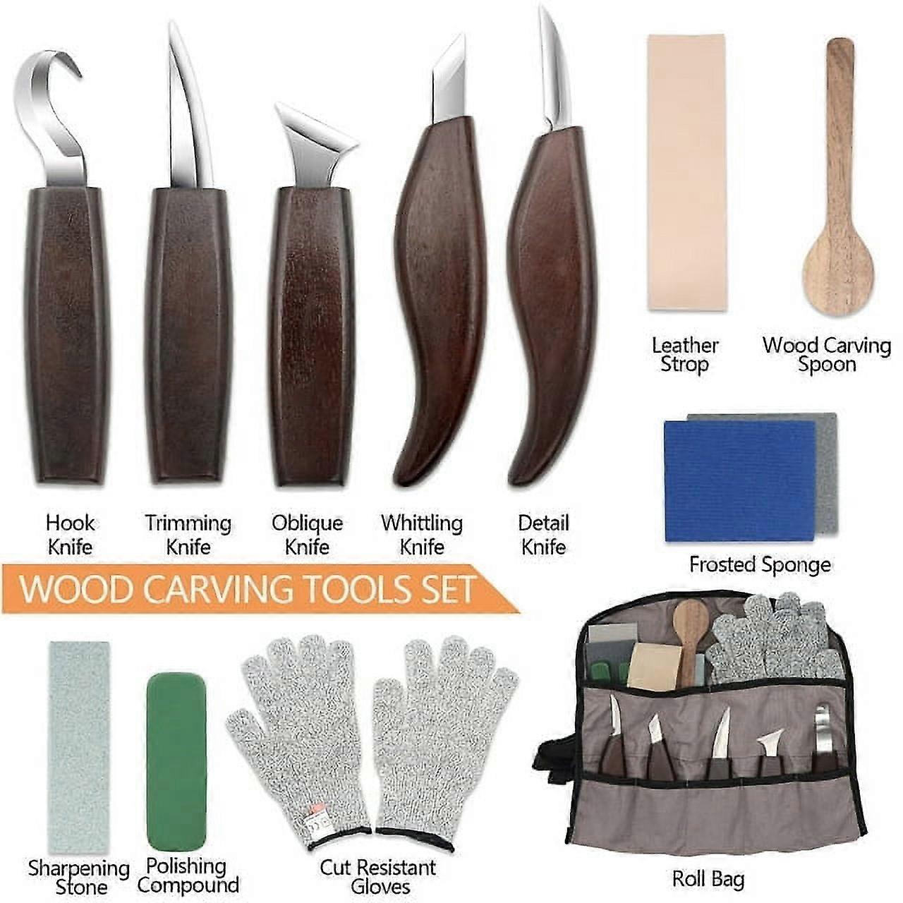 HOTBEST 14Pcs Wood Carving Tool Set with Hook Cutter Trimming Cutter Oblique Cutter Whittling Cutter Practical Wood Engraving Tool Kit