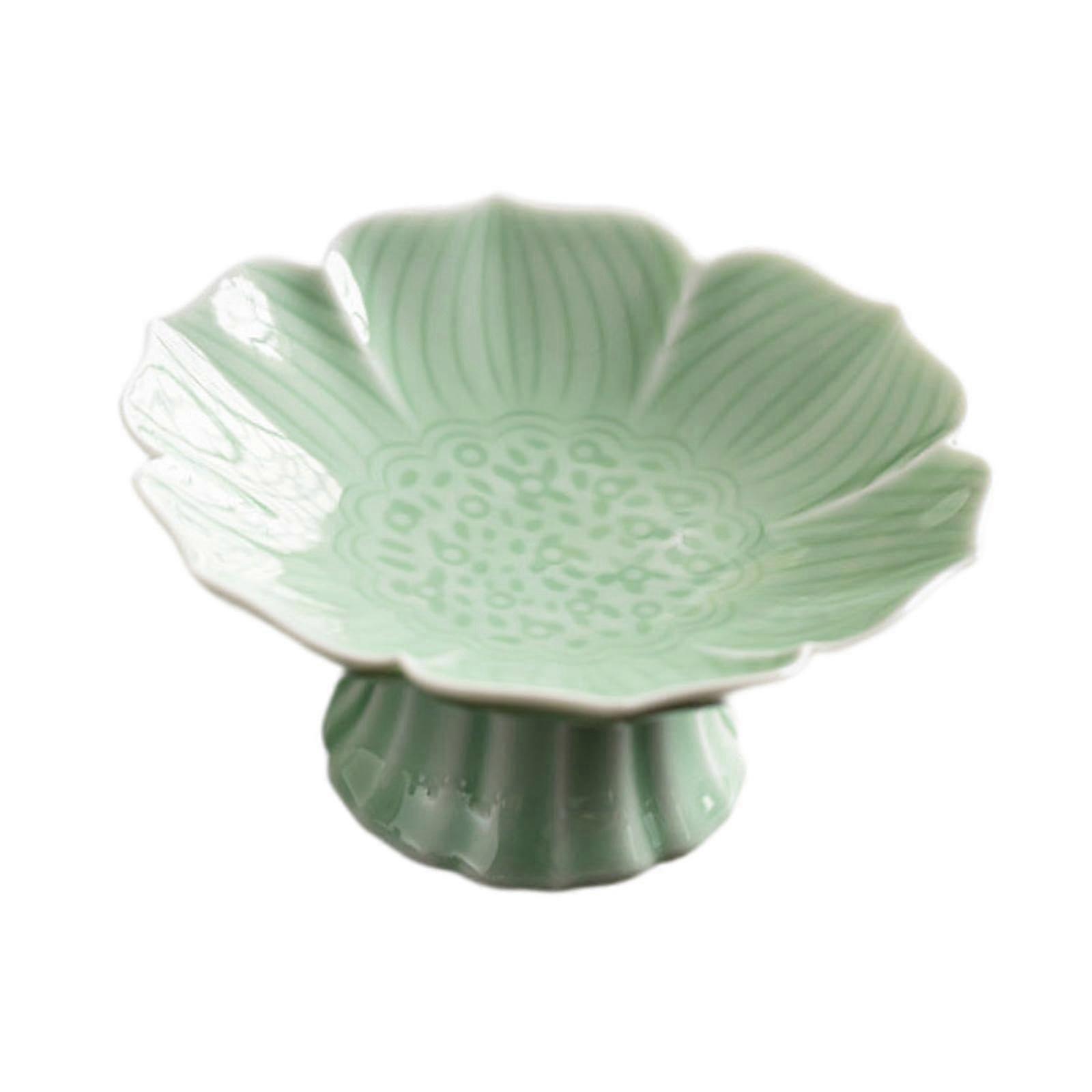 Lotus Shaped Ceramic Fruit Bowl Pedestal Stand for Dessert Snacks Table Centerpiece Green